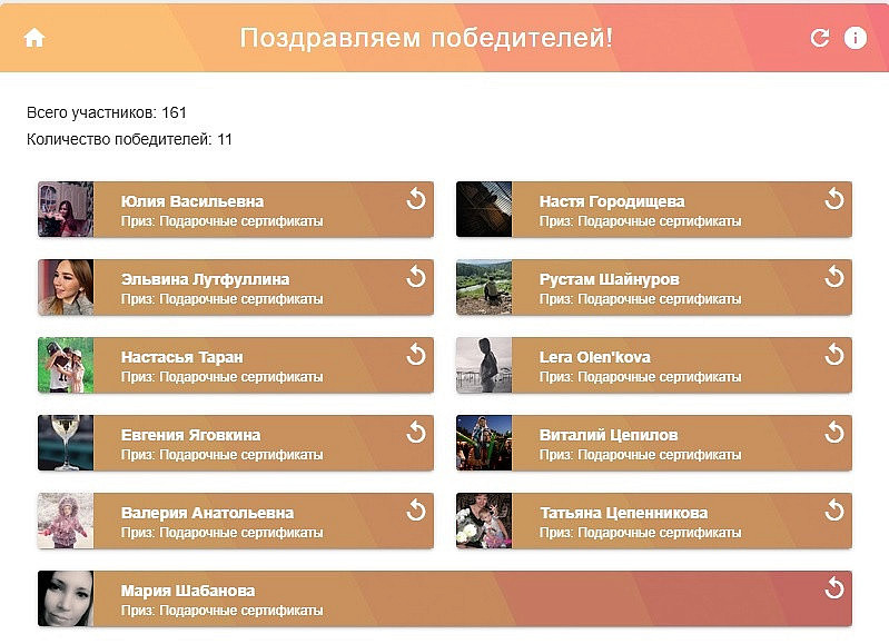 Победители выбраны с помощью приложения Рандомайзер (https://vk.com/app4938347)