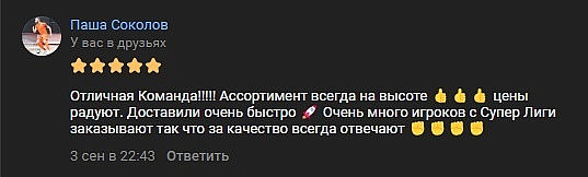 Здорово когда постоянные клиенты оставляют свои отзывы. Особенно когда это профессиональные игроки из Супер Лиги!